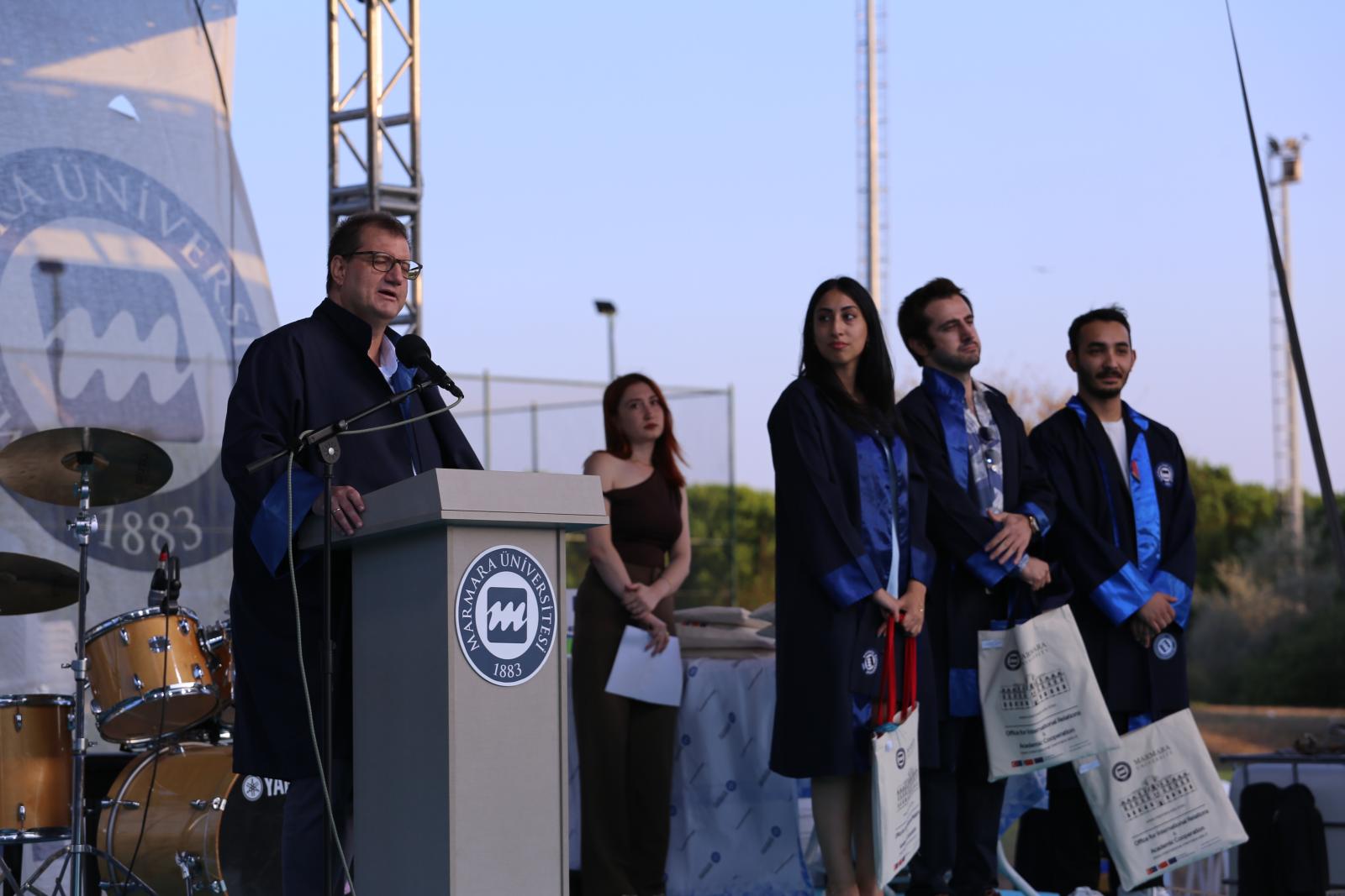Marmara Üniversitesi İletişim Fakültesi 2024-2025 öğretim yılı mezuniyet töreni, öğrencilerimizin, ailelerimizin ve akademik kadromuzun katılımıyla coşkulu bir şekilde gerçekleştirildi. Törende, fakültemizden mezun olan öğrencilerimizin iletişim alanındaki eğitim süreçlerini başarıyla tamamlamalarının gururu yaşandı. Öğrencilerimiz, akademik birikimleri, etik değerleri ve mesleki donanımlarıyla iletişim dünyasına adım attılar.